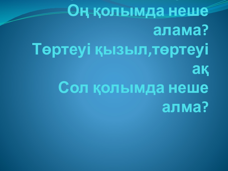 “Ойшылдар” тобы Үшеуі қызыл,үшеуі ақ Оң қолымда неше алама? Төртеуі қызыл,төртеуі ақ Сол қолымда неше алма?