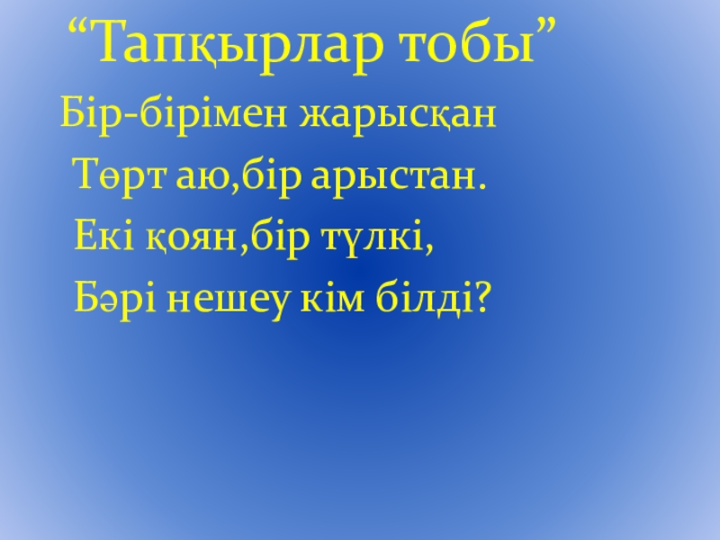 “Тапқырлар тобы”    Бір-бірімен жарысқан   Төрт аю,бір арыстан.