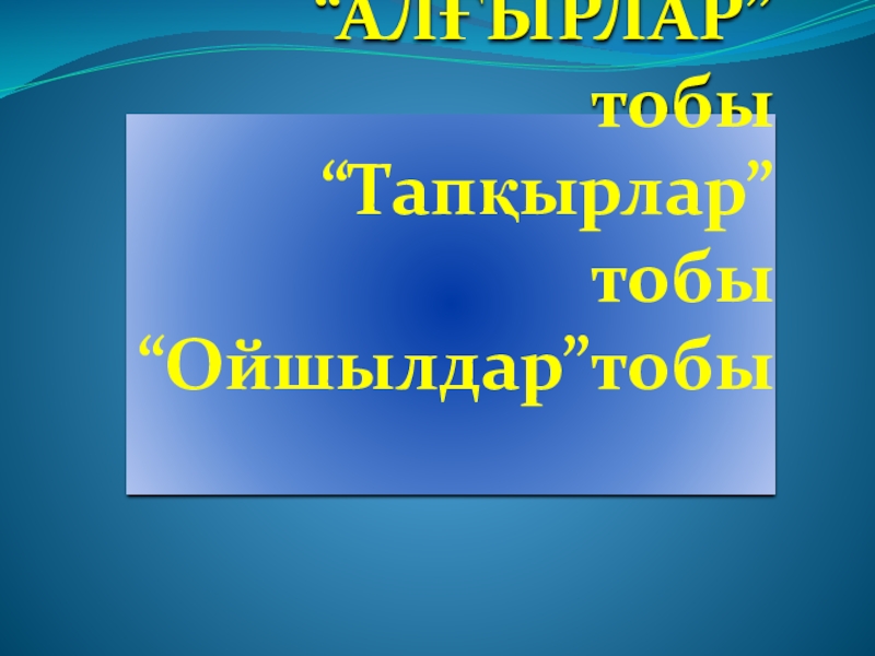 “АЛҒЫРЛАР” тобы “Тапқырлар” тобы “Ойшылдар”тобы