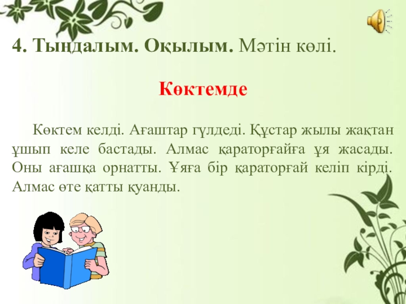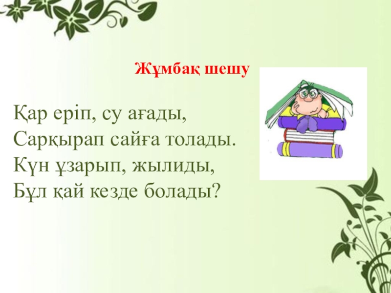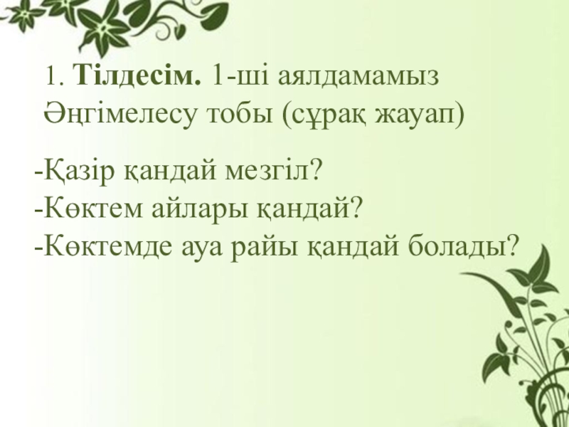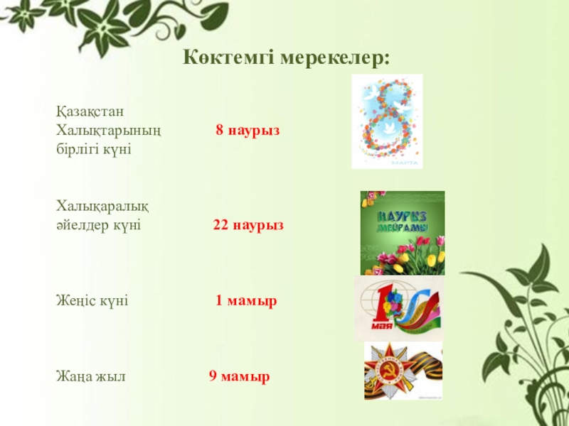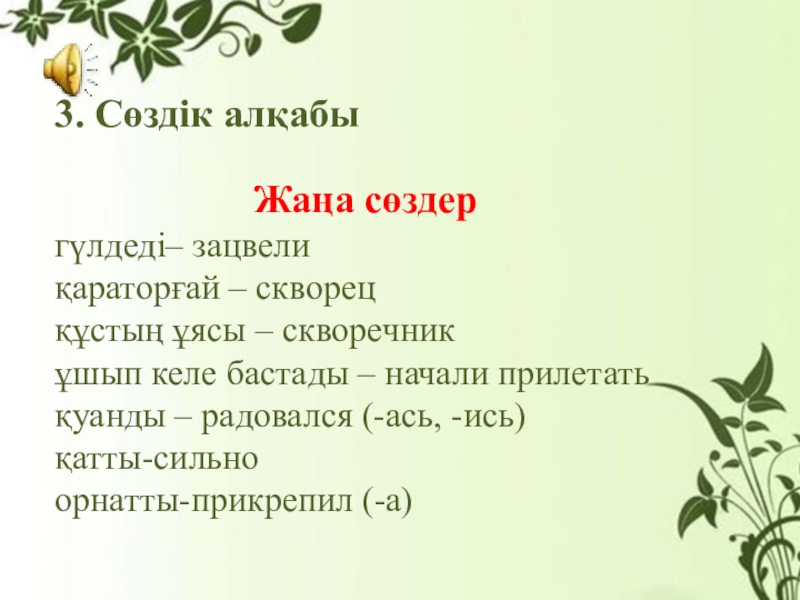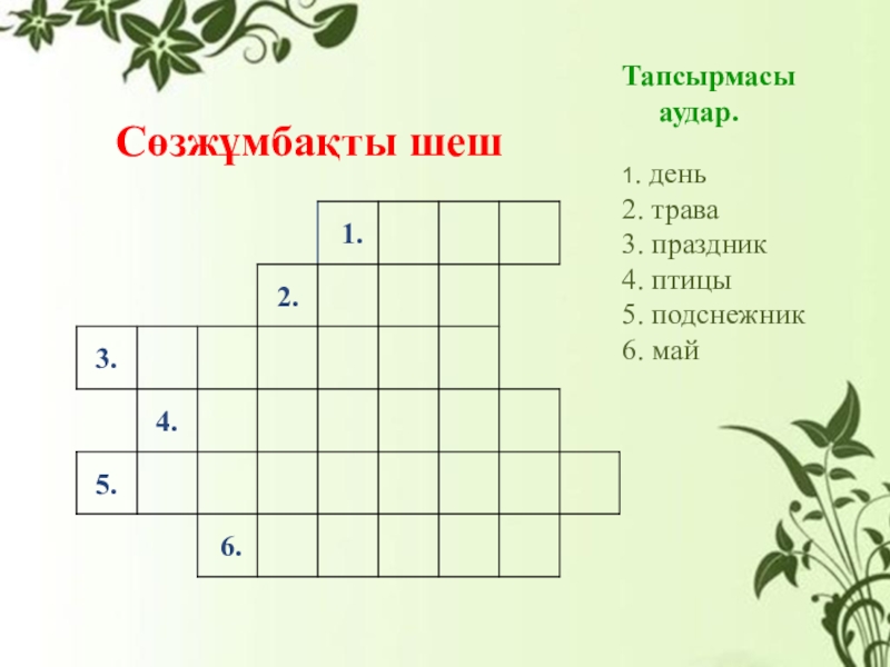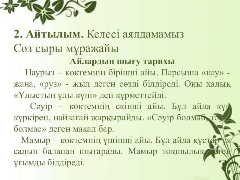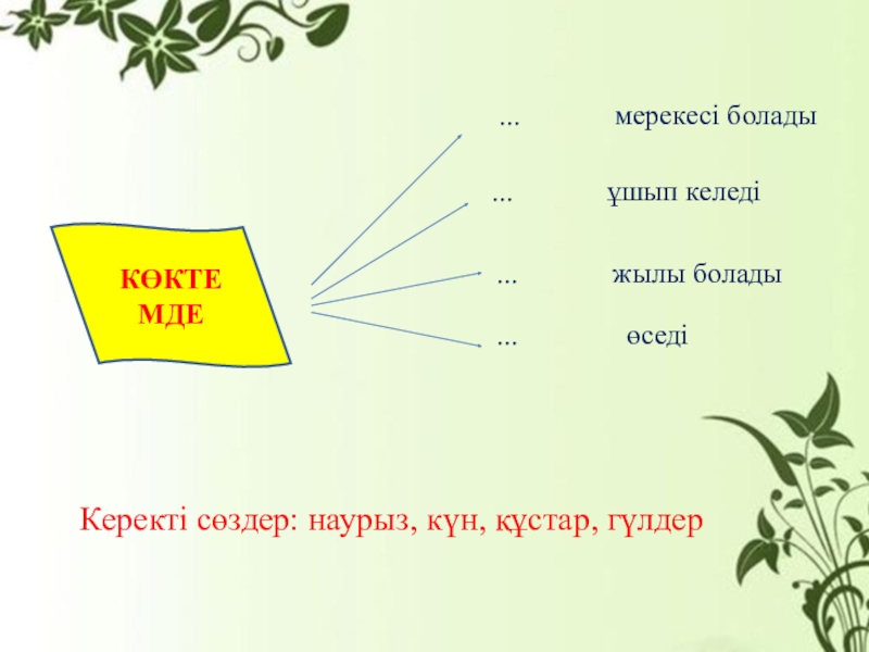 Керекті сөздер: наурыз, күн, құстар, гүлдер