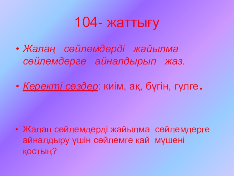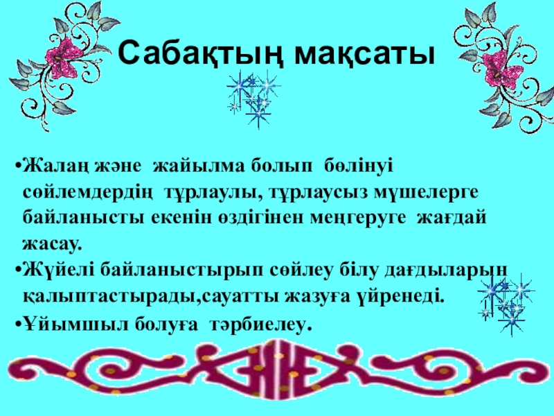 Жайылма сөйлем бастауыш пен баяндауыштан басқа.........