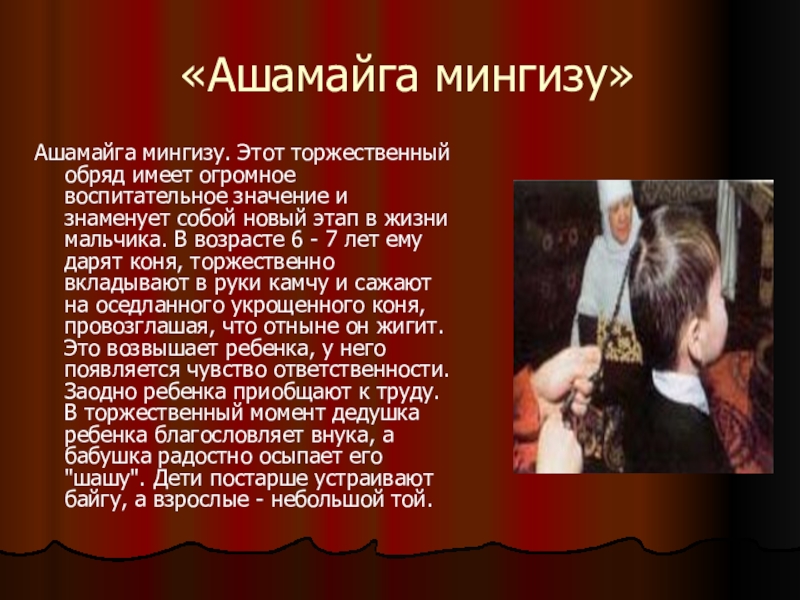 Ашамайга мингизу. Этот торжественный обряд имеет огромное воспитательное значение и