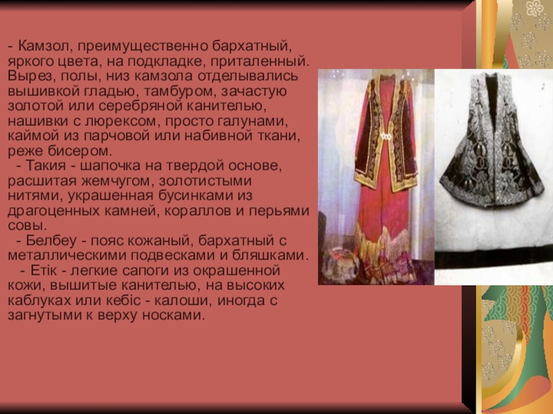 Слайд 22 - Камзол, преимущественно бархатный, яркого цвета, на подкладке,