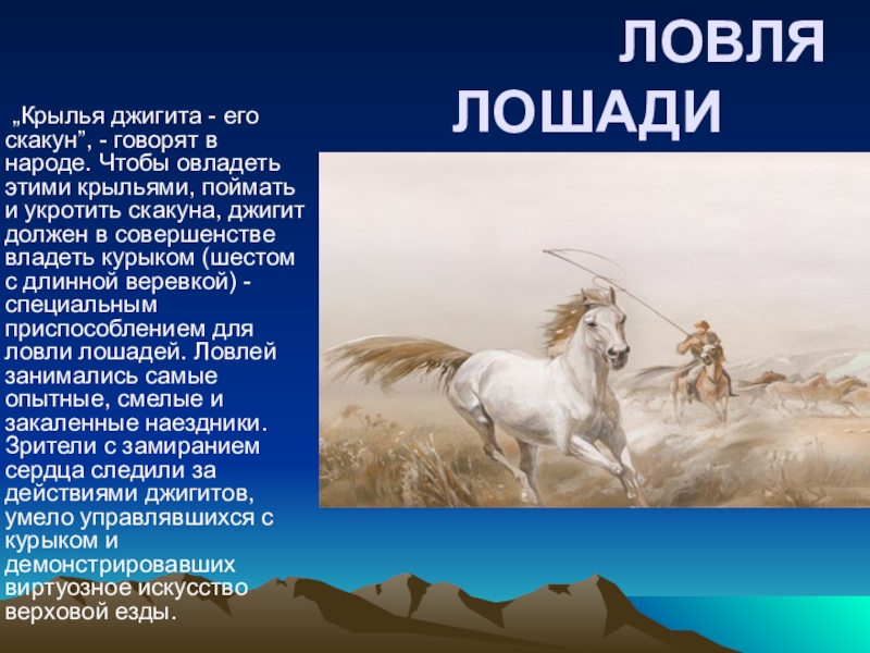 Слайд 17 Если говорят, что конь - крылья джигита,
