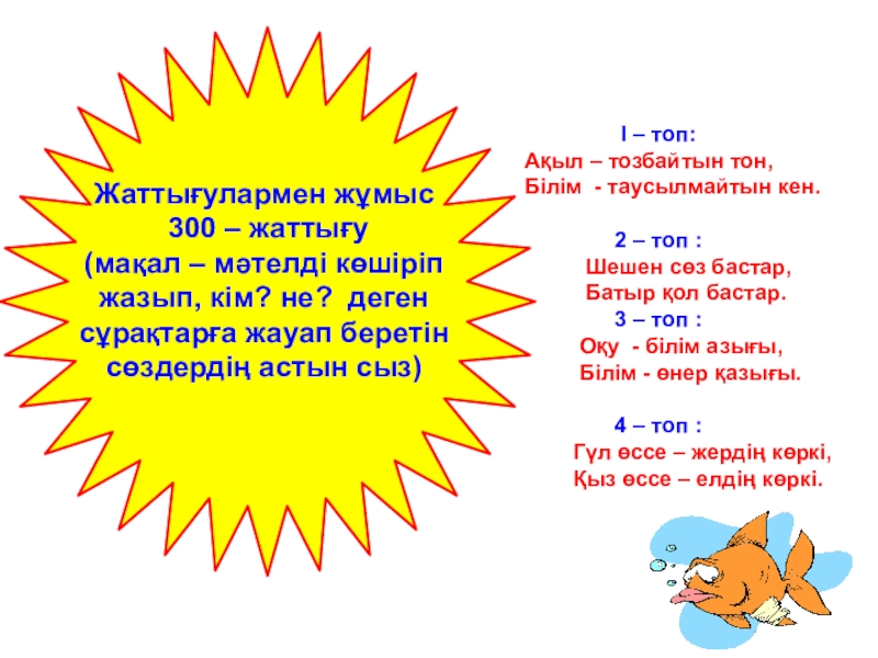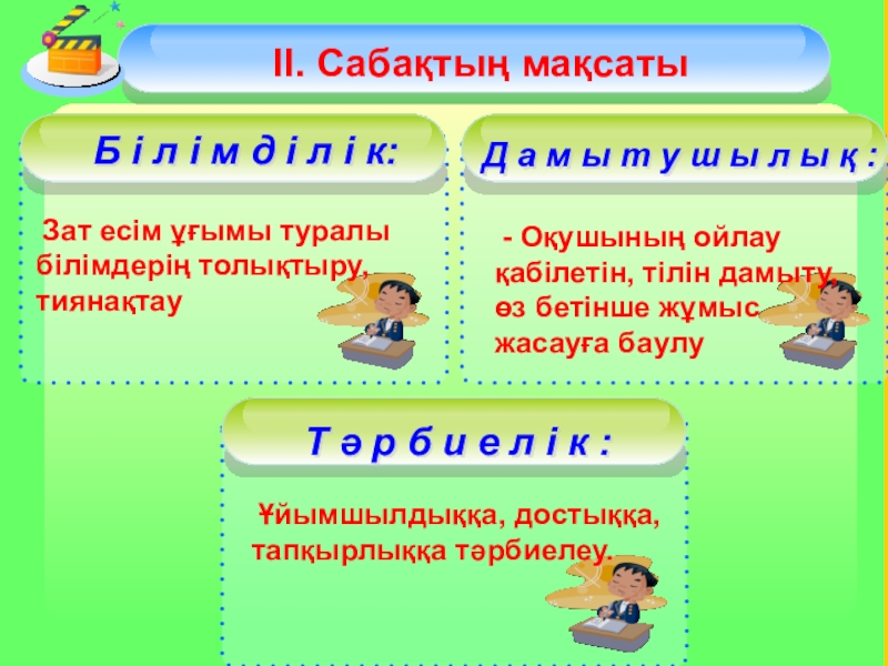 - Оқушының ойлау қабілетін, тілін дамыту, өз бетінше жұмыс жасауға баулу