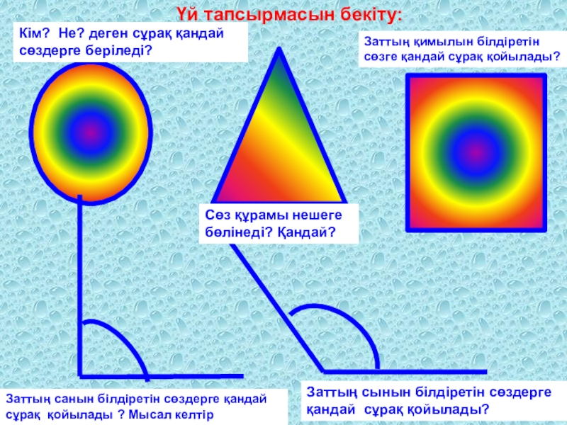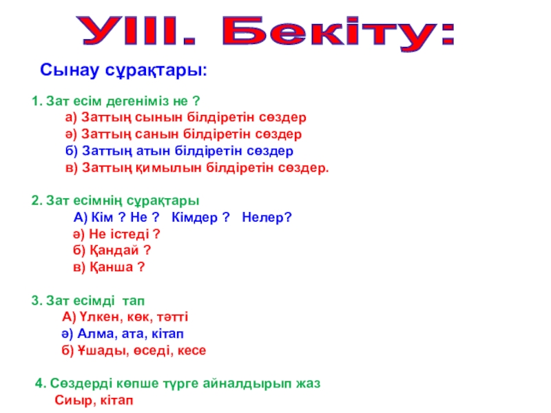 Заттың санын білдіретін сөздерге қандай сұрақ қойылады ? Мысал келтір