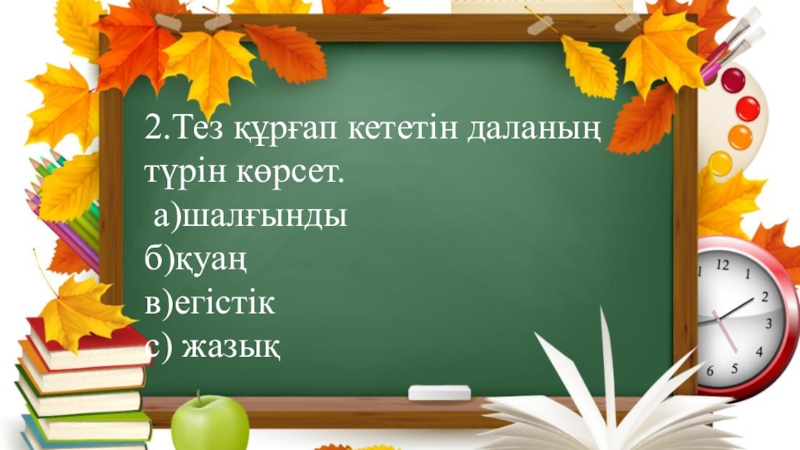 Слайд 252.Тез құрғап кететін даланың түрін көрсет.