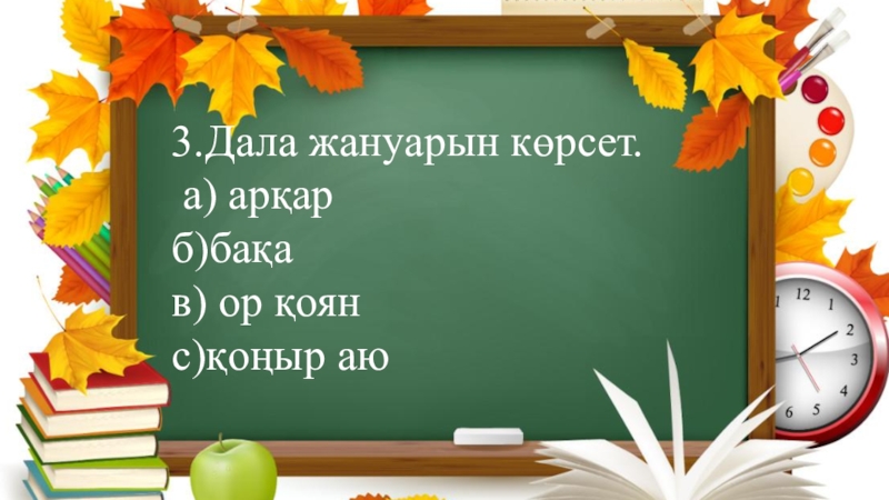 3.Дала жануарын көрсет. а) арқар  б)бақа  в) ор қоян с)қоңыр аю