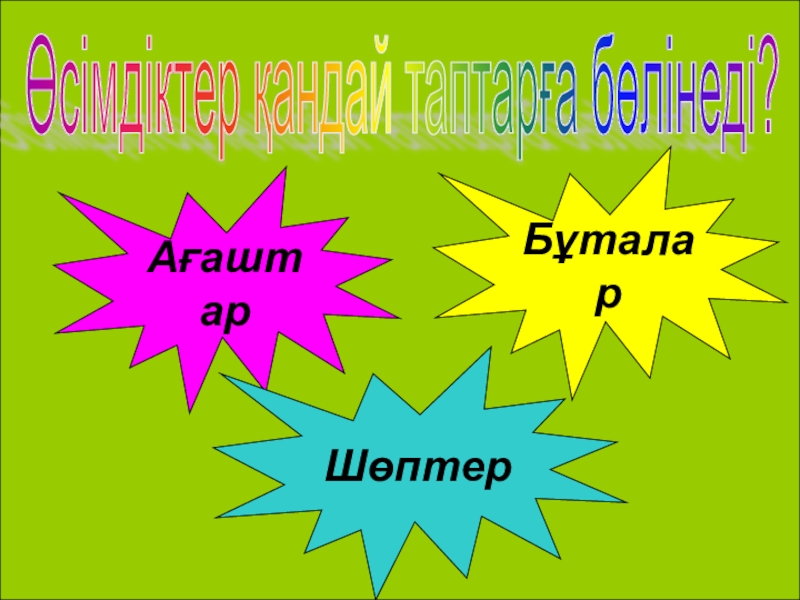 Өсімдіктер қандай таптарға бөлінеді?АғаштарБұталарШөптер
