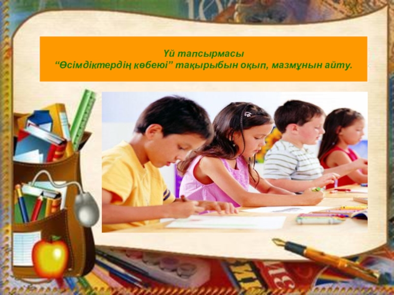 Үй тапсырмасы“Өсімдіктердің көбеюі” тақырыбын оқып, мазмұнын айту.