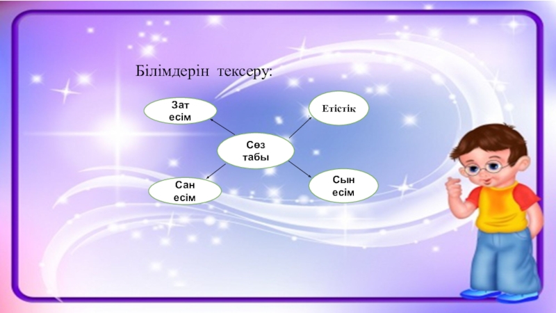 кеңейту, сан есім түрлері мен және оның сұрақтарымен таныстыру,сөз таптары туралы білімдерін бекіту.