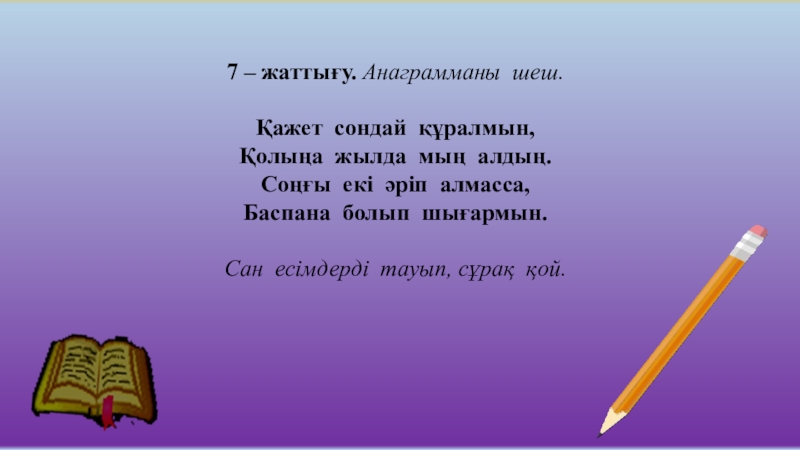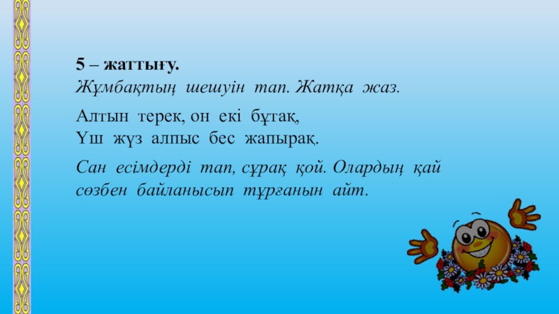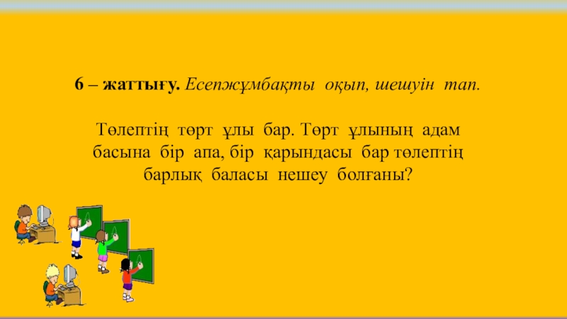 Слайд 196 – жаттығу. Есепжұмбақты оқып, шешуін тап.