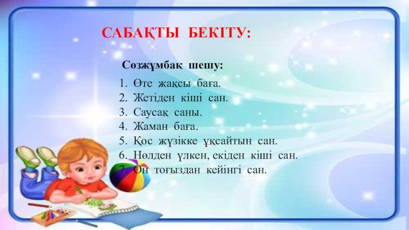 Слайд 22САБАҚТЫ БЕКІТУ: