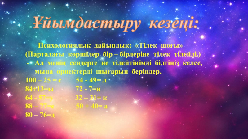 Слайд 4 Психологиялық дайындық: «Тілек шоғы»