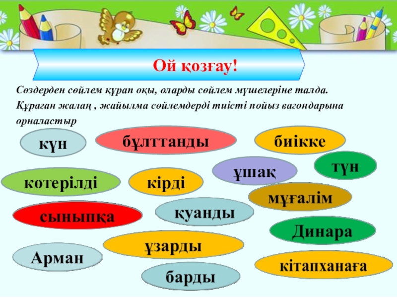 Дамытушылық: Оқушылардың сөздік қорын байытып, ауызекі және жазба сөйлеу тілін, логикалық ойлау қабілетін, шығармашылық қабілетін дамыту.