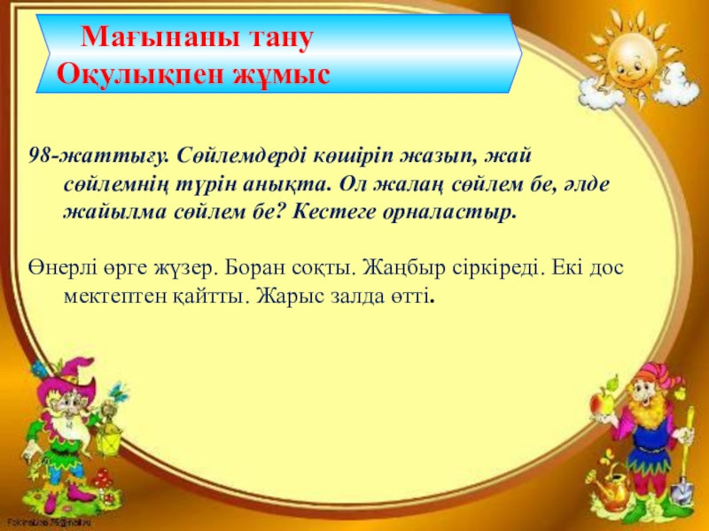 Сабақтың тақырыбы: «Жалаң және жайылма сөйлем»