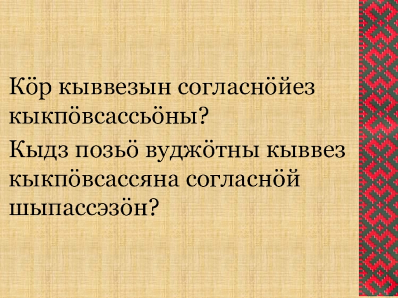 Слайд 15Кöр кыввезын согласнöйез кыкпöвсассьöны?