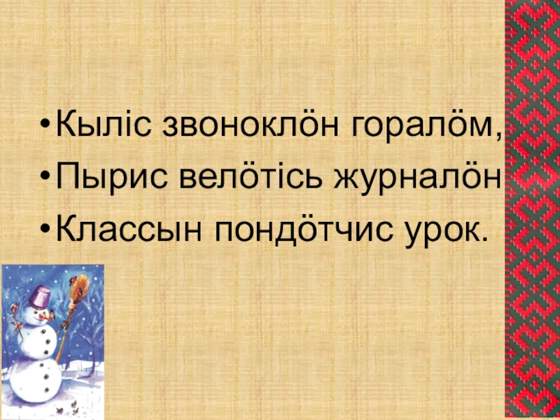 Кыліс звоноклöн горалöм,Пырис велöтісь журналöн,Классын пондöтчис урок.