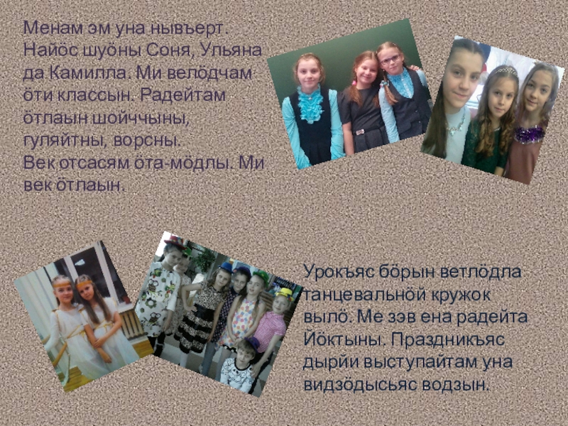 Урокъяс бӧрын ветлӧдла танцевальнӧй кружок вылӧ. Ме зэв ена радейта