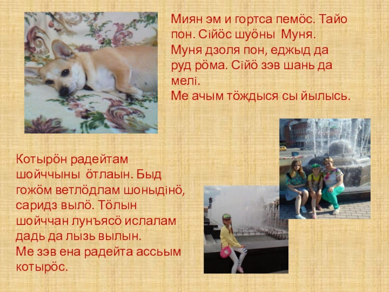 Менам котырын нель морт. Тайӧ мам, бать, ыджыд чой да ме.