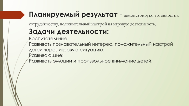 Слайд 12Планируемый результат - демонстрируют готовность к сотрудничеству, положительный настрой на игровую