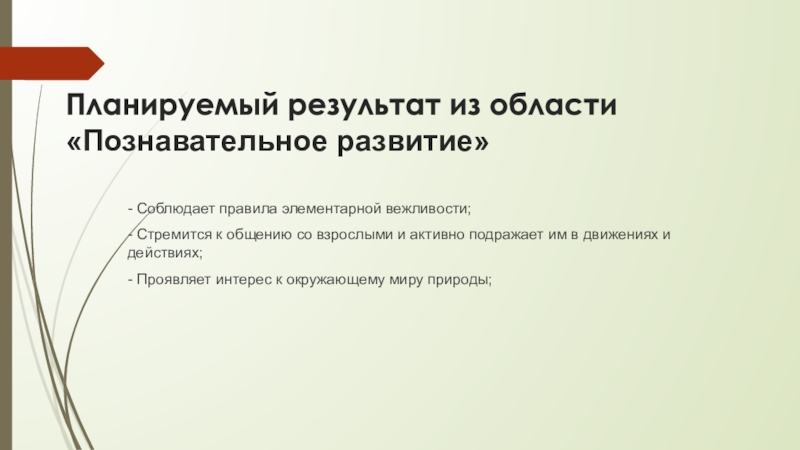 Слайд 6Планируемый результат из области «Познавательное развитие»