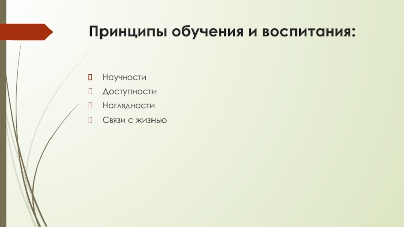 Слайд 8Принципы обучения и воспитания: