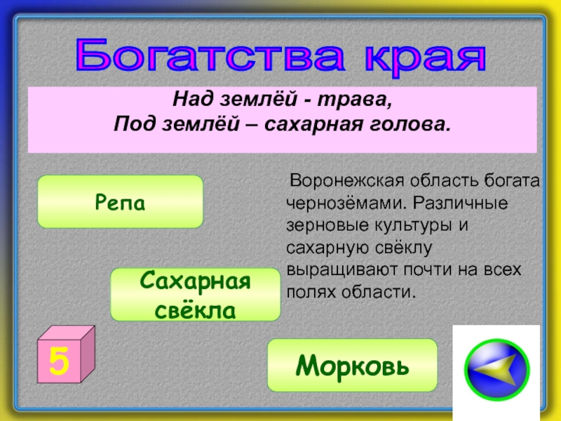 Воронежская область богата чернозёмами. Различные зерновые культуры и сахарную свёклу выращивают почти на всех полях области.
