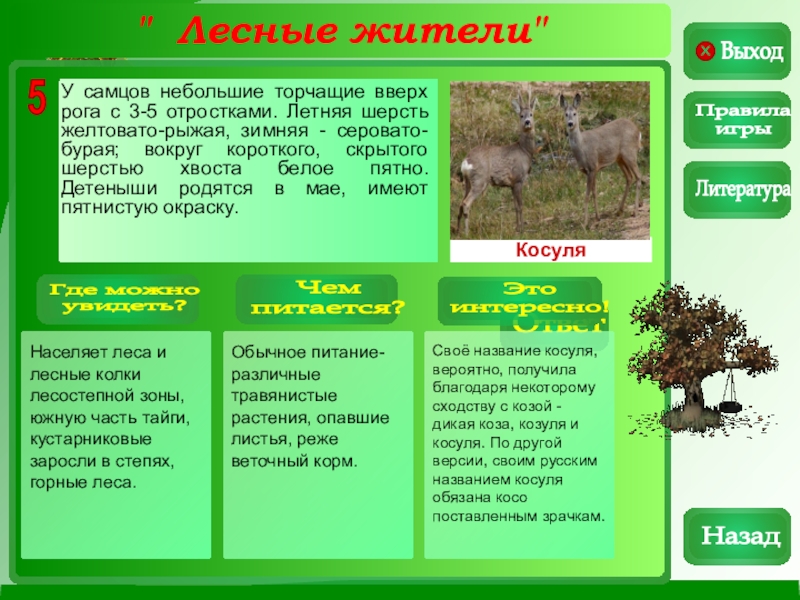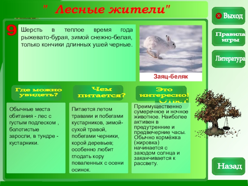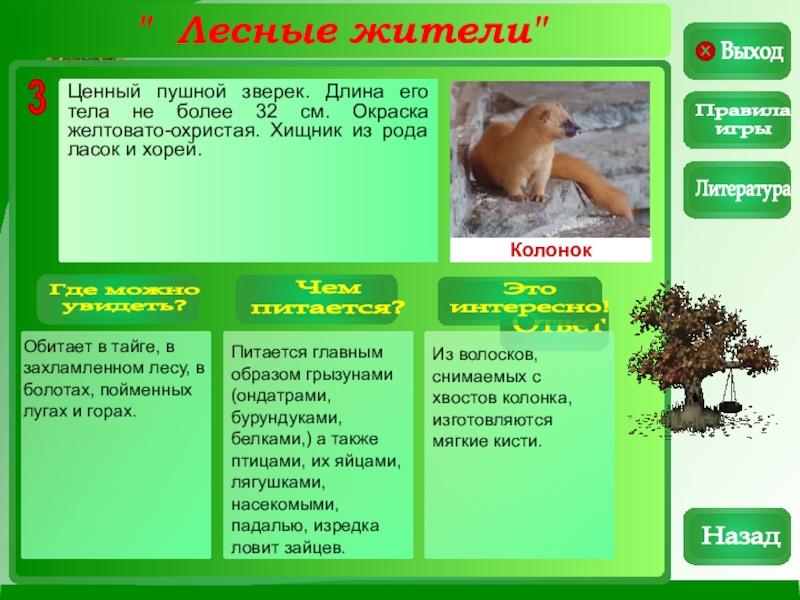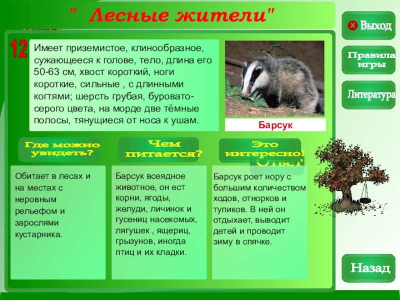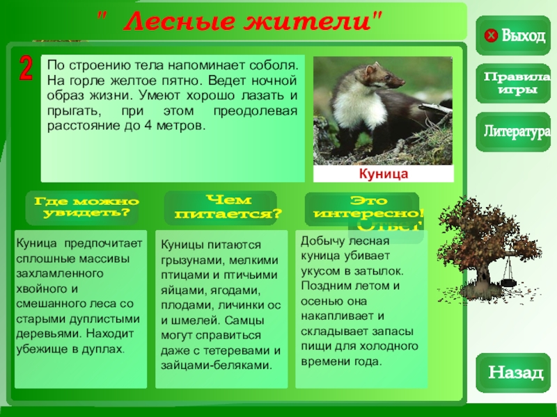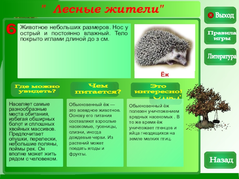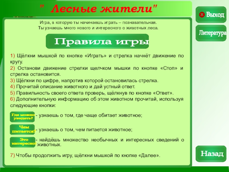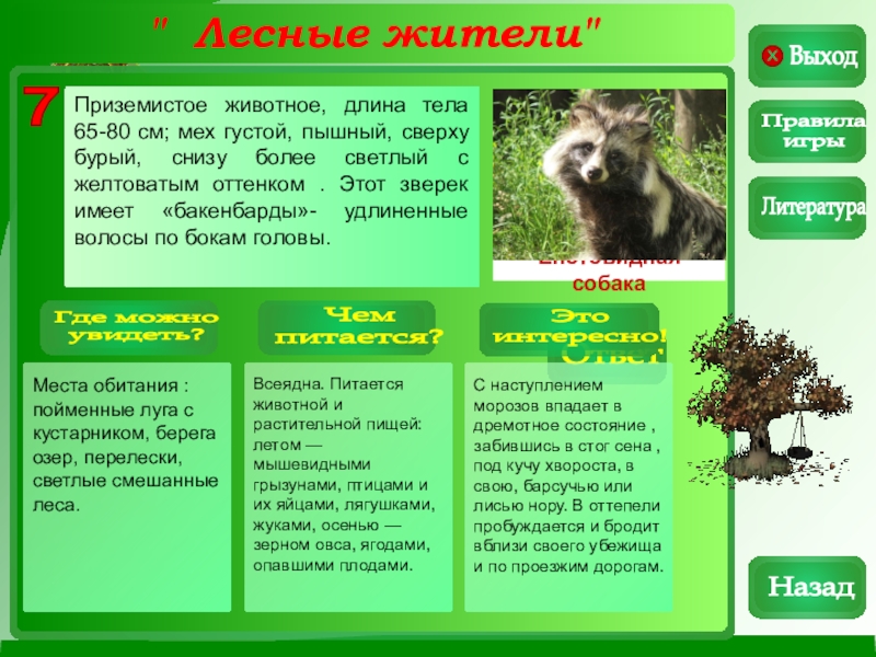 6) Дополнительную информацию об этом животном прочитай, используя следующие кнопки: