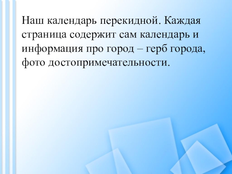 Слайд 44Наш календарь перекидной. Каждая страница содержит сам календарь и информация про