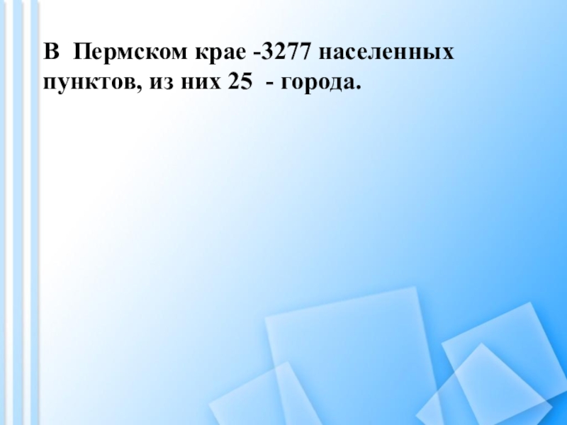 Слайд 11В Пермском крае -3277 населенных пунктов, из них 25 - города.