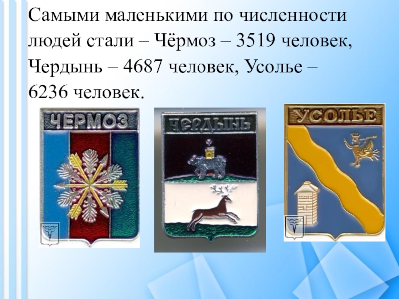 Чердынь – 4687 человек, Усолье – 6236 человек.