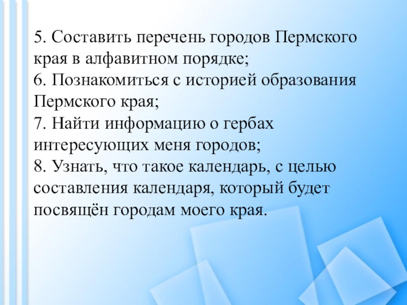 Слайд 55. Составить перечень городов Пермского края в алфавитном порядке;