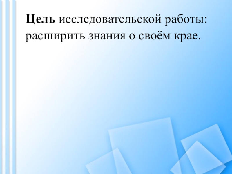 Слайд 3Цель исследовательской работы: расширить знания о своём крае.