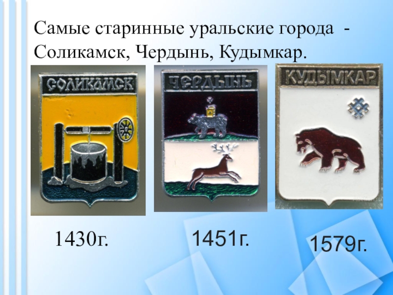 Слайд 19Самые старинные уральские города - Соликамск, Чердынь, Кудымкар.