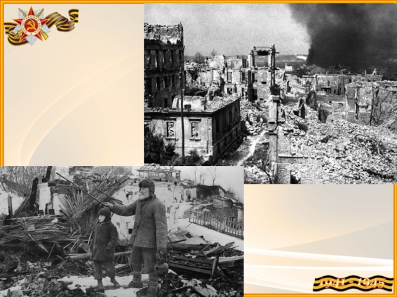 Слайд 5За полгода оккупации района иноземными захватчиками было разрушено и сожжено 428