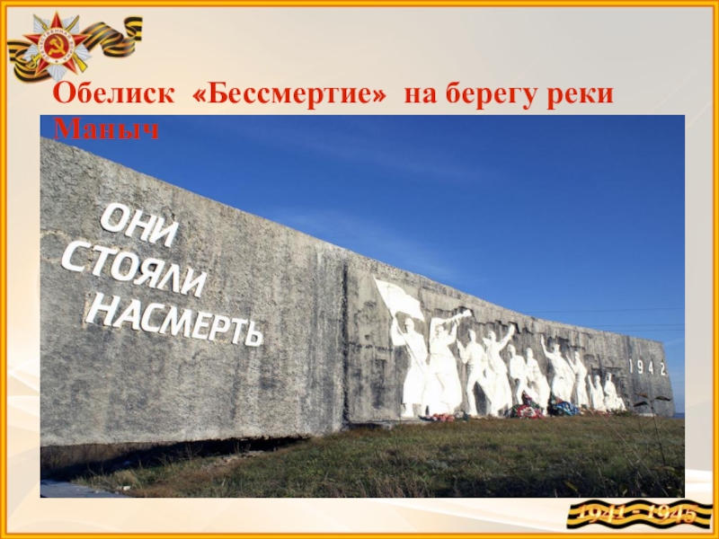 Слайд 27Обелиск «Бессмертие» на берегу реки Маныч