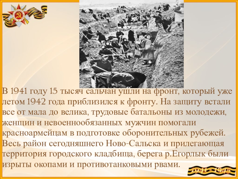 Слайд 10В 1941 году 15 тысяч сальчан ушли на фронт, который уже