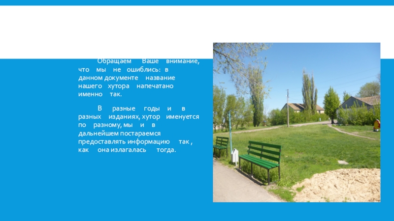 Ваше внимание, что мы не ошиблись: в данном документе название нашего хутора напечатано именно так.