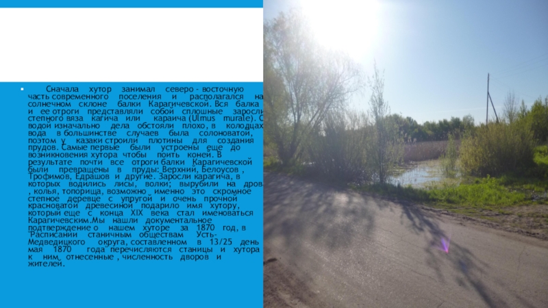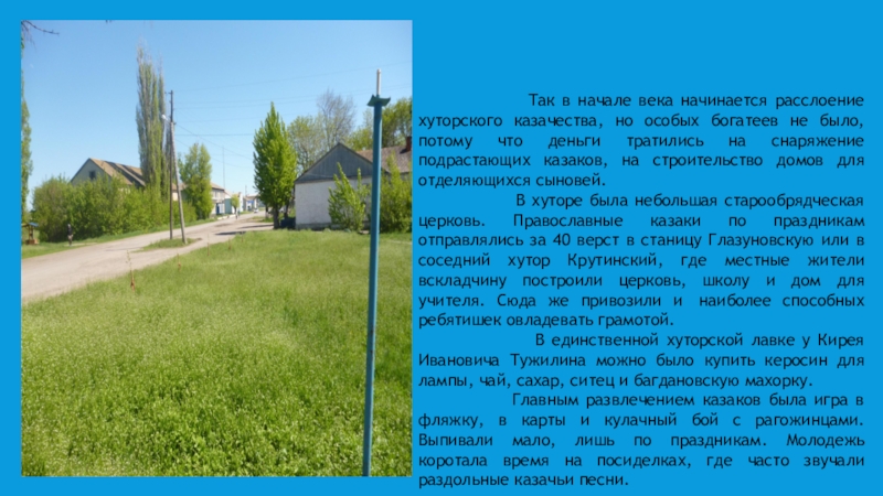 Слайд 12 Сначала хутор занимал северо