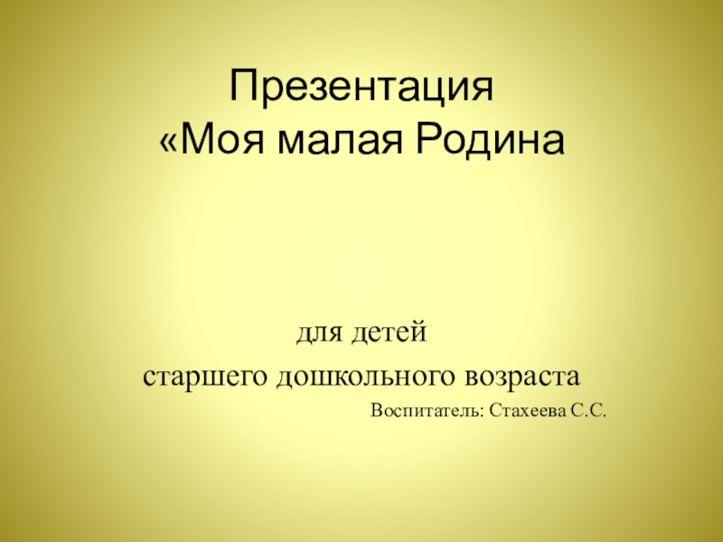 Презентация «Моя малая Родина для детей старшего дошкольного возрастаВоспитатель: Стахеева С.С.
