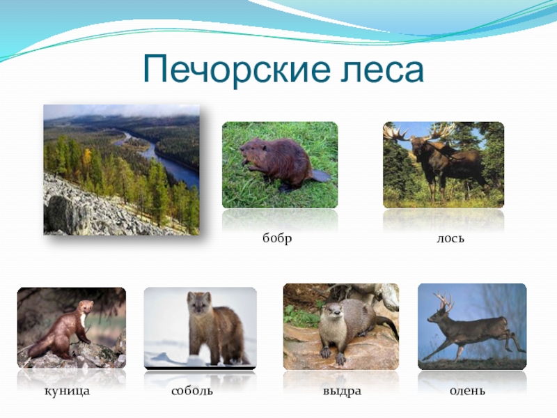 Печорские леса бобрлось куницасоболь выдра олень