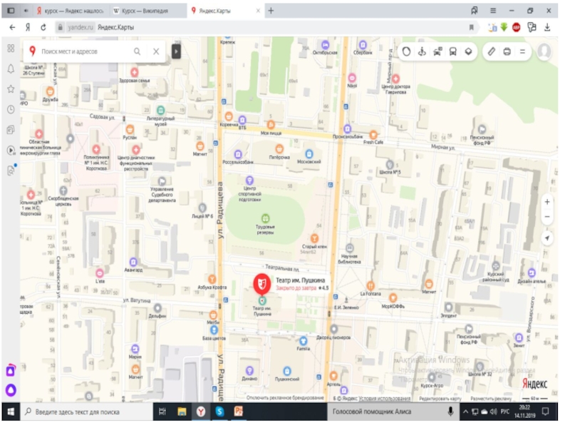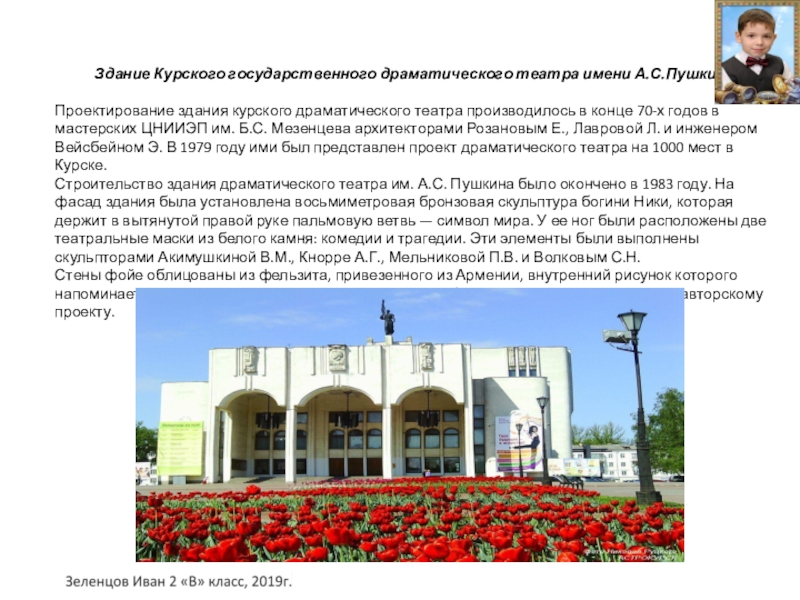 Слайд 12 Здание Курского государственного драматического театра имени А.С.Пушкина