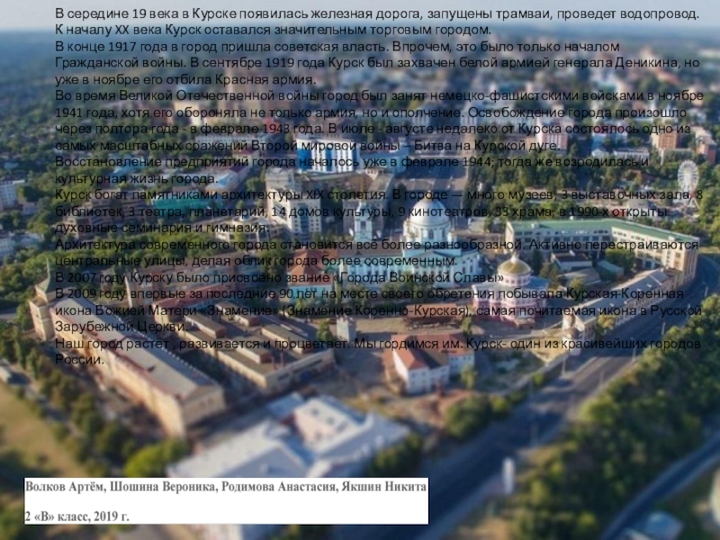Наш город растёт , развивается и процветает. Мы гордимся им. Курск- один из красивейших городов России.
