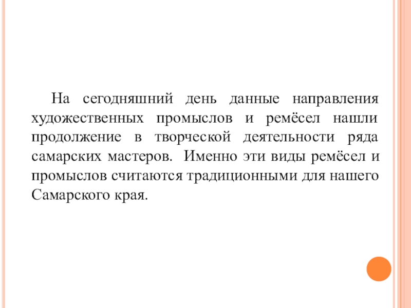в творческой деятельности ряда самарских мастеров. Именно эти виды ремёсел и промыслов считаются традиционными для нашего Самарского края.