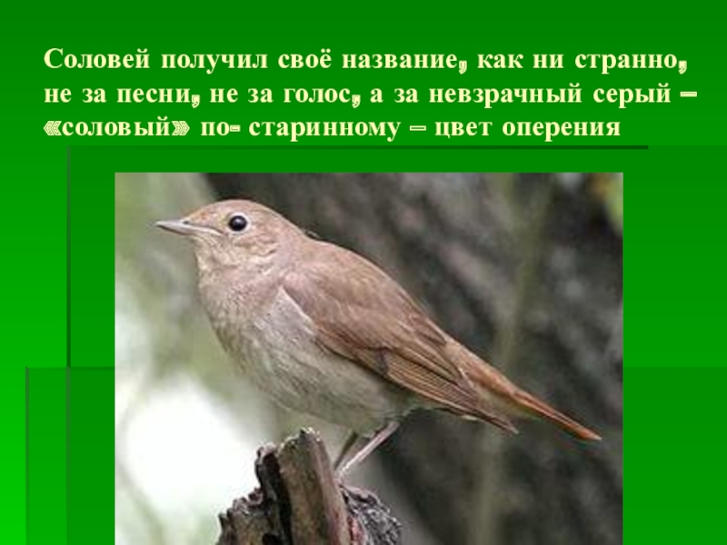 Слайд 13Соловей получил своё название, как ни странно, не за песни, не