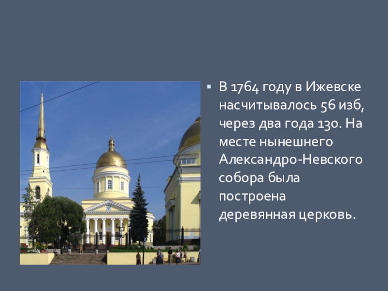 В 1764 году в Ижевске насчитывалось 56 изб, через два года