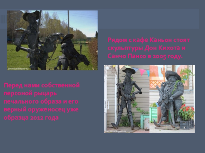 Рядом с кафе Каньон стоят скульптуры Дон Кихота и Санчо Пансо в 2005 году.