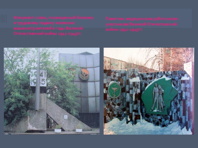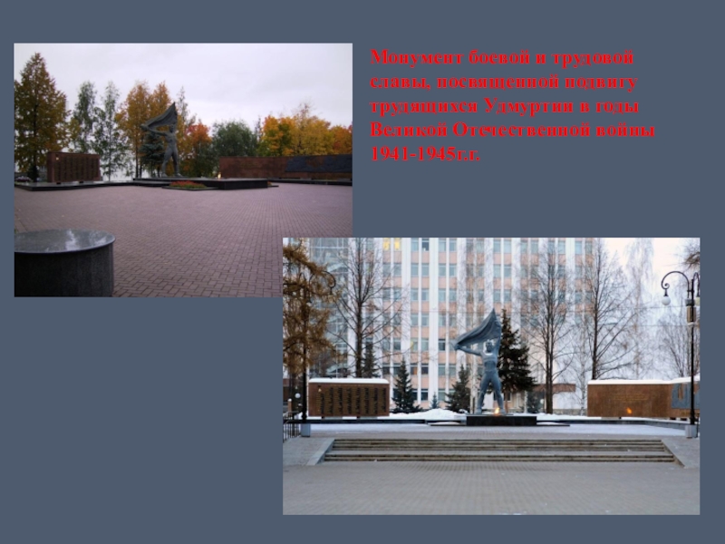 Слайд 30Монумент боевой и трудовой славы, посвященной подвигу трудящихся Удмуртии в годы