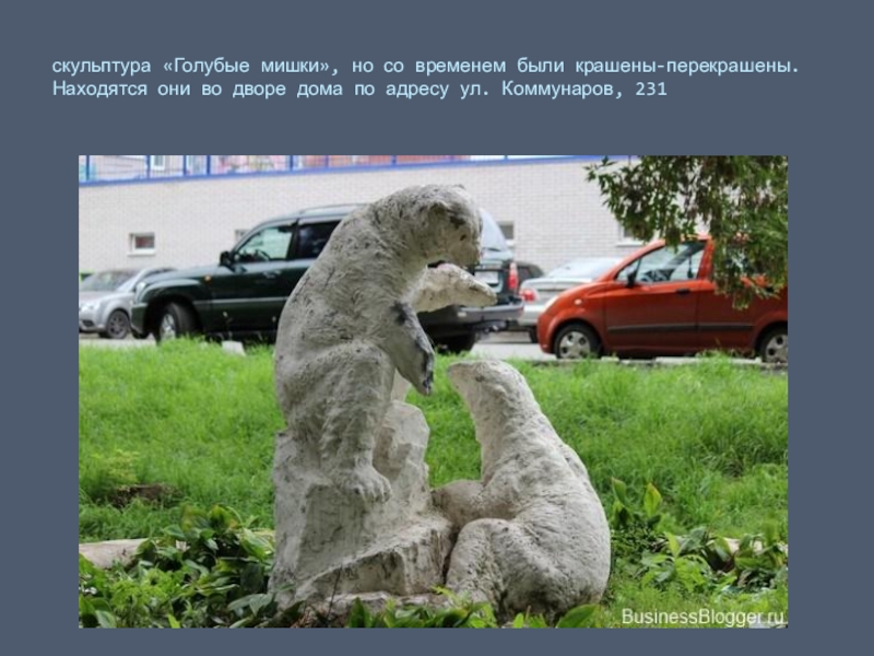 Слайд 25скульптура «Голубые мишки», но со временем были крашены-перекрашены. Находятся они во